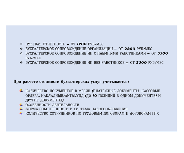 Обратитесь к нам за качественными бухгалтерскими услугами. Мы поможем вам наладить учет, сэкономить время и избежать ошибок. Доверьте свои финансовые дела профессионалам!